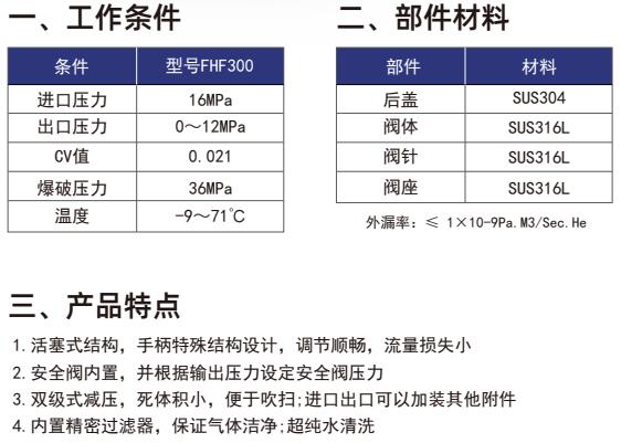 FHF300氣體減壓器。輸入高壓,輸出高壓中等流量,輸出壓力穩(wěn)定;適用于標準氣體、高純氣體、低濃度(≤1%)腐蝕性氣體等;活塞式設計。