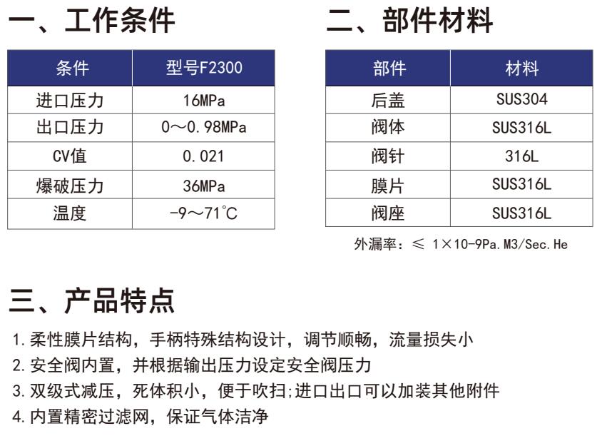 F2300精密氣體減壓器。輸入中等壓力,輸出低壓標(biāo)準(zhǔn)流量,輸出壓力特別穩(wěn)定;適用于精密儀器、高純氣體等;雙級(jí)膜片式設(shè)計(jì)。